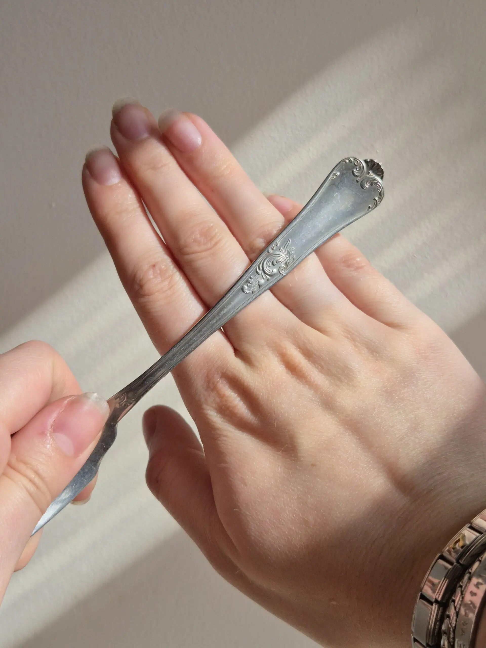 Een sierlijke swirl lepel klaar om gemaakt te worden tot jouw unieke ring